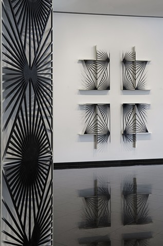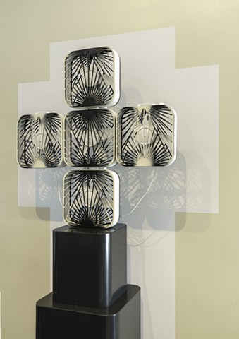 Edra Soto alters and recontextualizes common functional objects—wrought-iron screens, plastic lawn furniture, and electric fans, ubiquitous in her native Puerto Rico—to create objects and environments that celebrate the voices of working-class communities. Soto’s installation, the place of dwelling, is commissioned for Kemper Museum’s tenth annual Atrium Project and is a direct response to the original 1994 Gunnar Birkerts architecture. Addressing the tabernacle-like center atrium, Soto’s installation invests the space with personal memories of her Catholic upbringing, a gesture that both questions methods of colonial indoctrination and celebrates sacred sites filled with signs and symbols offering guidance and direction. By infusing elements of vernacular design with sacred symbolism, Soto proposes a correlation between art museums and churches as similarly charged spaces for the discovery of higher meaning.