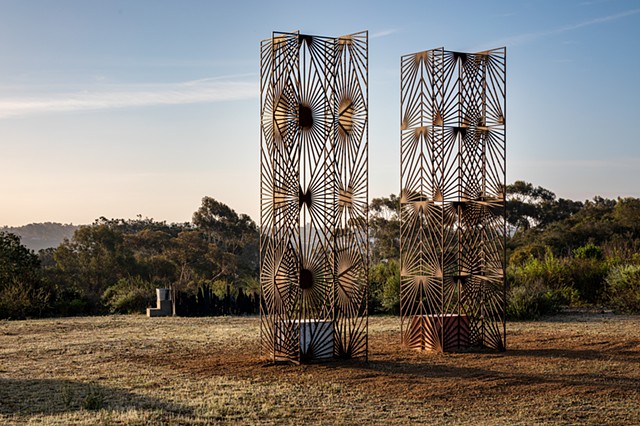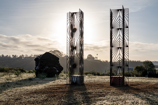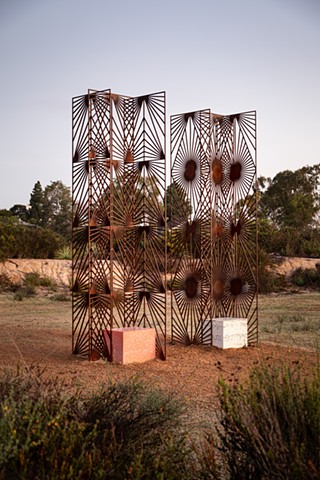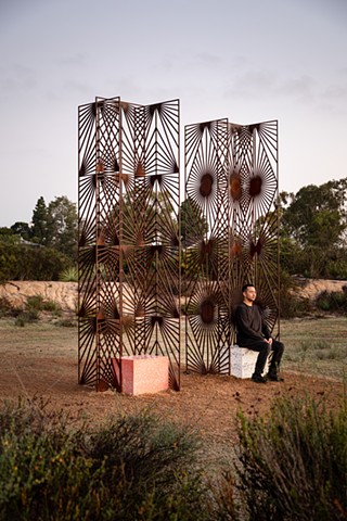 For more than a decade, Soto’s Grafts have reimagined the geometrically patterned rejas and quiebrasoles of Puerto Rican homes, transplanting these architectural forms into new landscapes. In doing so, she creates poetic meditations on identity, displacement, and belonging—structures that, like the word “graft” suggests, take root and grow anew in unfamiliar ground.